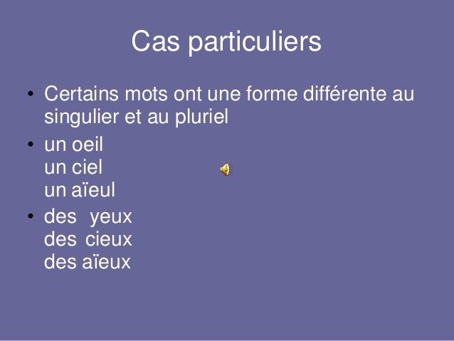 Certains mots ont une prononciation différente au singulier et au pluriel.